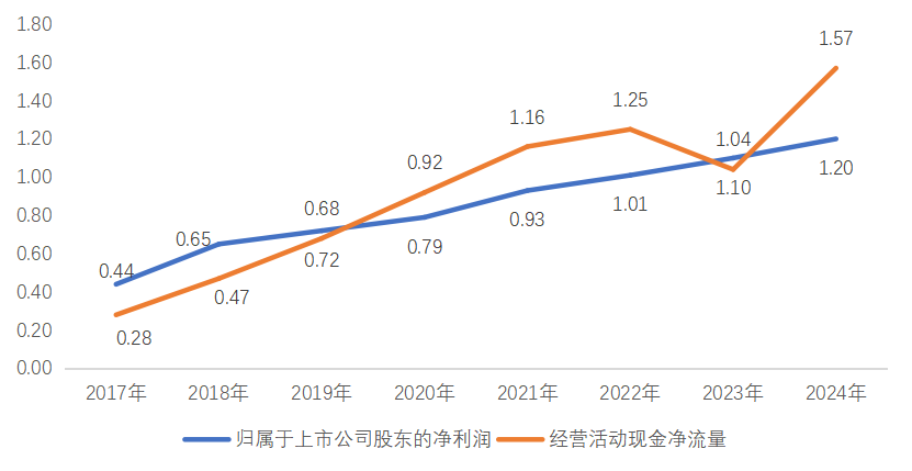更值得关注的是,伴随着公司持续增长的利润表现,公司的经营现金流表现也持续稳健。2024年公司经营活动产生的现金流量净额达到1.57亿元,同比大幅增长50.50%。